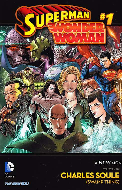 Portada y página del interior del SUPERMAN #23.1 de fecha de portada noviembre de 2013. La cubierta es de tipo tridimensional. Si lo deseas puedes ver el efecto entrando en esta pagina en la que se muestran varias de las portadas realizadas este mes en diferentes colecciones. Lleva como subtítulo de cabecera "Byzarro #1" en la aventura titulada "Arrested Development" escrita por Sholly Fisch, dibujada por Jeff Johnson, entintada por Andy Smith y coloreada por Javier Mena y Jordie Bellaire. La portada de atrás en la que se ve a Batman también es de este tipo con efecto "tri". La aventura continua en la nueva colección "FOREVER EVIL #1, que como no podía ser de otra manera dadas las costumbres degradadas del mundo actual, aparece con cuatro portadas alternativas que puedes ver abajo en las que el fondo es siempre el mismo y lo único que cambia es el personaje central. También puedes ver dos páginas del interior. Las páginas centrales del cuaderno se abren formando un "Poster" de cuatro páginas en el que se muestran a todos los "malos" juntos.
